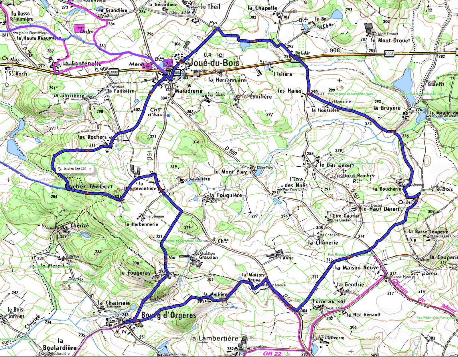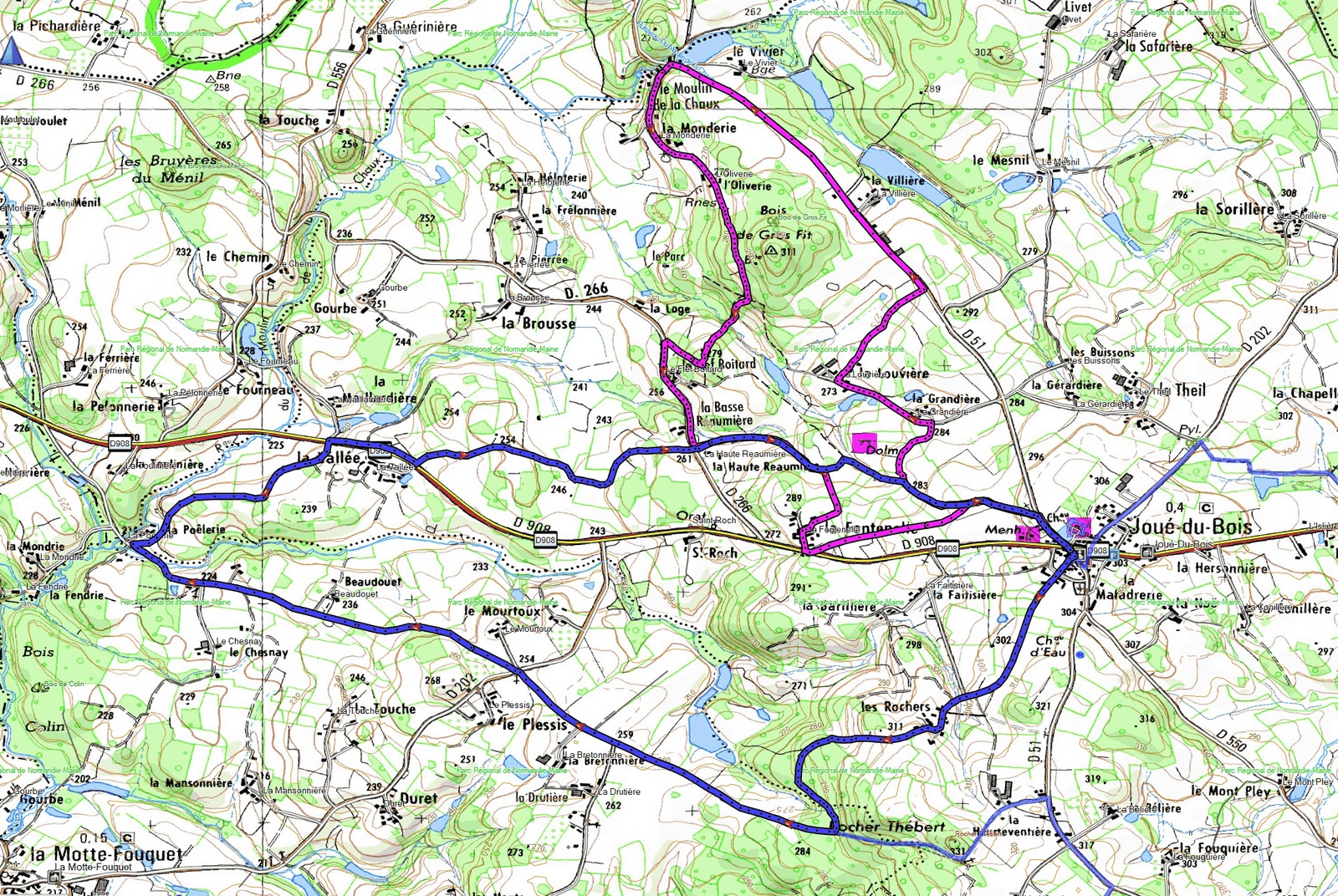 - Retour Joué-du-Bois, commun avec le circuit 2 : voir (*)